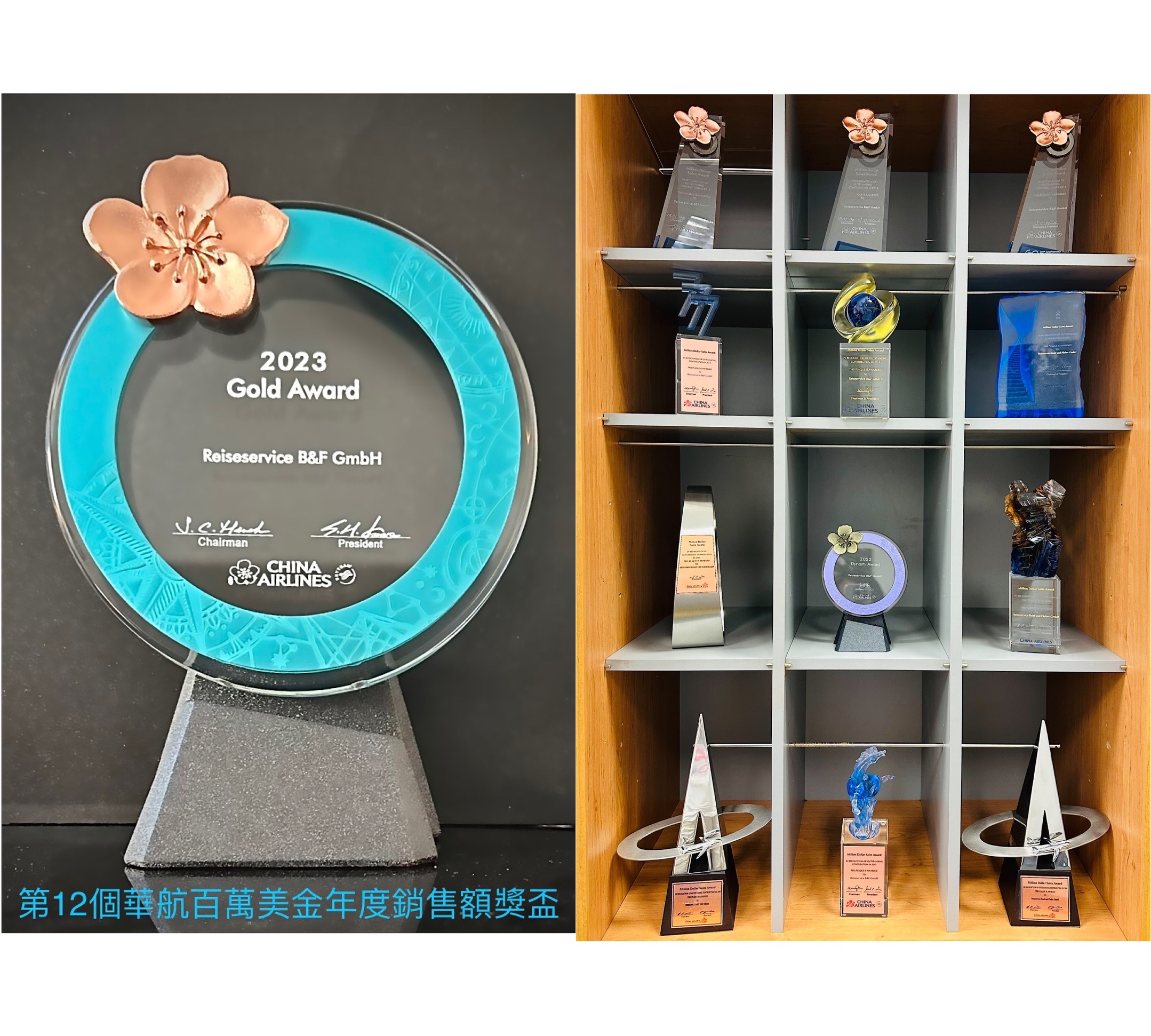12 mal von China Airlines für 1 Mio.$ Jahresumsatz ausgezeichnet